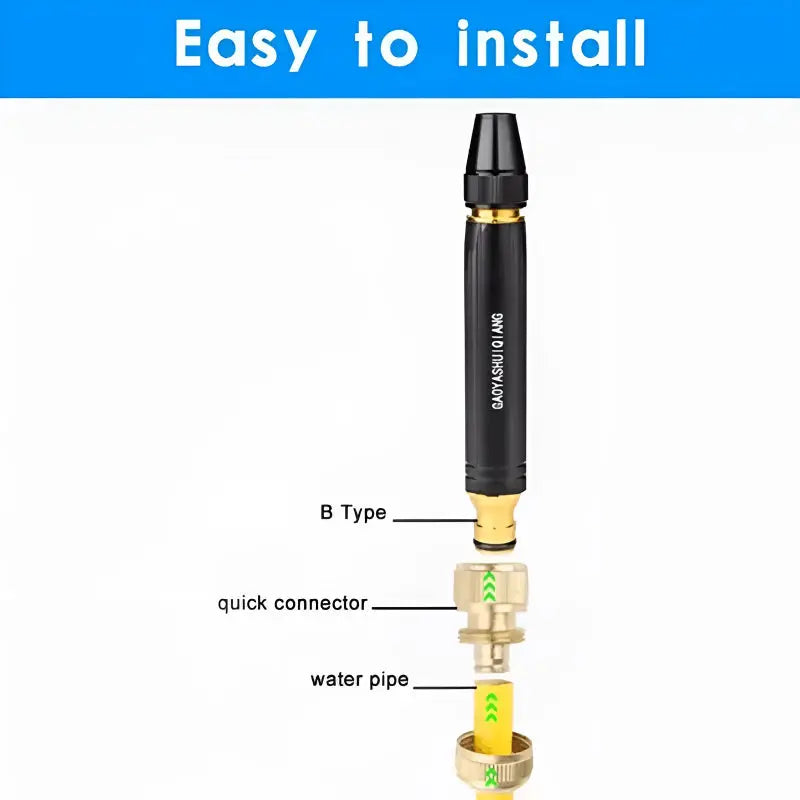 Upgrade your cleaning and gardening tasks with the High-Pressure Adjustable Water Spray Nozzle. This nozzle is made from durable metal and delivers high hydraulic power, ensuring efficient water pressure for thorough cleaning and watering. Its quick connection feature makes it compatible with automobile water pipes, making any job convenient.