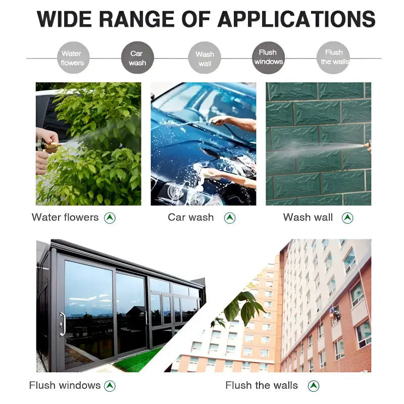 Applications: Car washing, gardening, floor and window cleaning, bike washing
